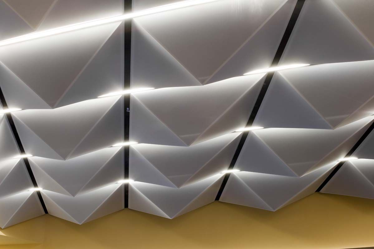 Ob abgehangene Deckensysteme mit indirekter Beleuchtung oder flache Akustikpanele mit versteckter Licht- und Brandschutztechnik. Gerade im Bereich der Deckenkonzeption sind Dank unseres vielseitigen Portfolio fast alle Wünsche realisierbar.
